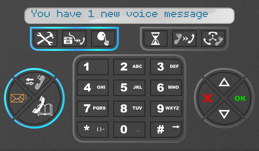 The icons were selected on the basis of the results obtained from an online scientific icon validation test in which 257 participants from all over the world took part. The buttons are grouped according to the moment of suggested or available use. This idea is further enhanced by the use of blue colored guiding lights surrounding each group of buttons. The guiding lights guide the user through the steps that he has to take in order to complete a chosen action. The redesign has a 30 character dot matrix display and text larger than 30 characters will automatically scroll.
