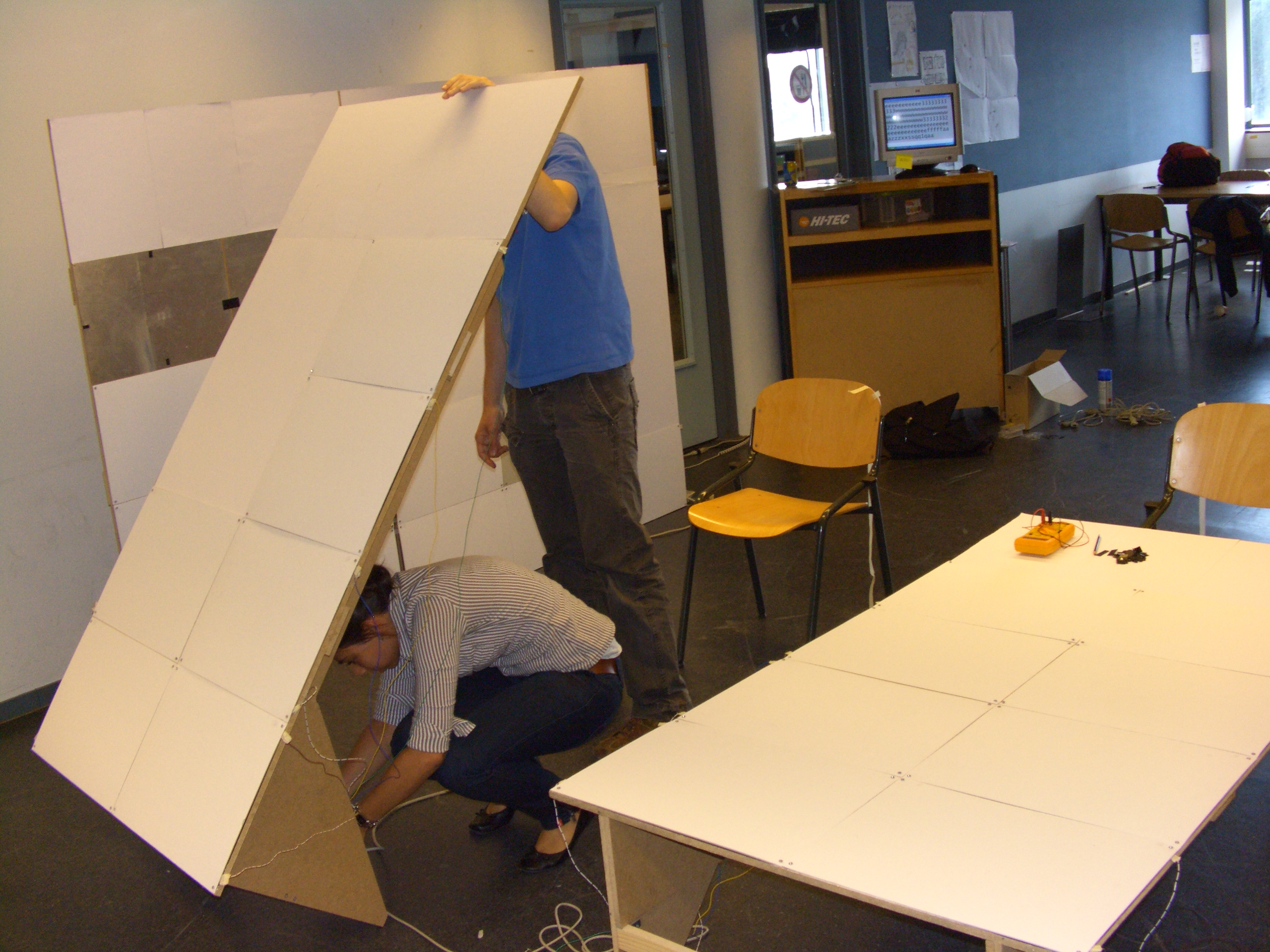 - We used the circuitry of a computer keyboard as interface to connect the panels to the computer controlling the beamer.