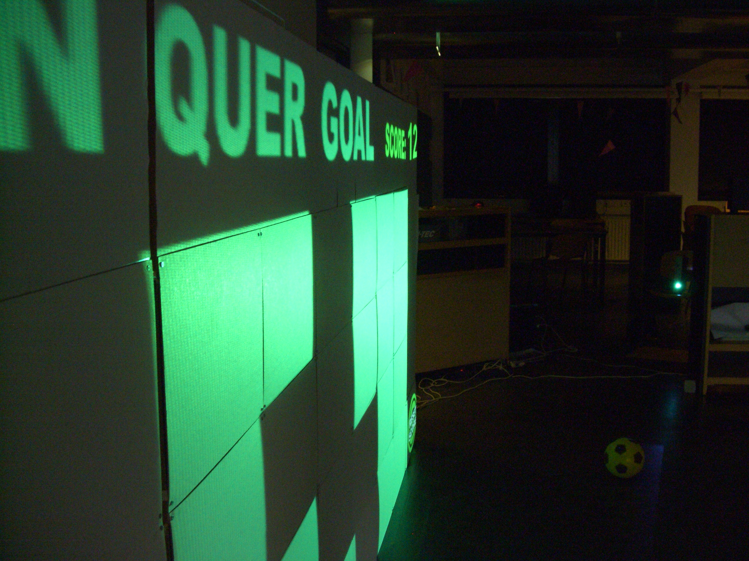 At playgrounds, the sport courts are very popular and are used intensively for playing football. It is however strange that these sport courts are hardly used by girls, despite the strong growth in the popularity of girl football in the last few years. Our design goal was to develop an interactive installation for sport courts and in particular the Cruyff courts. By adding interactive technology to the game of football we want to enhance the playability of the playgrounds.