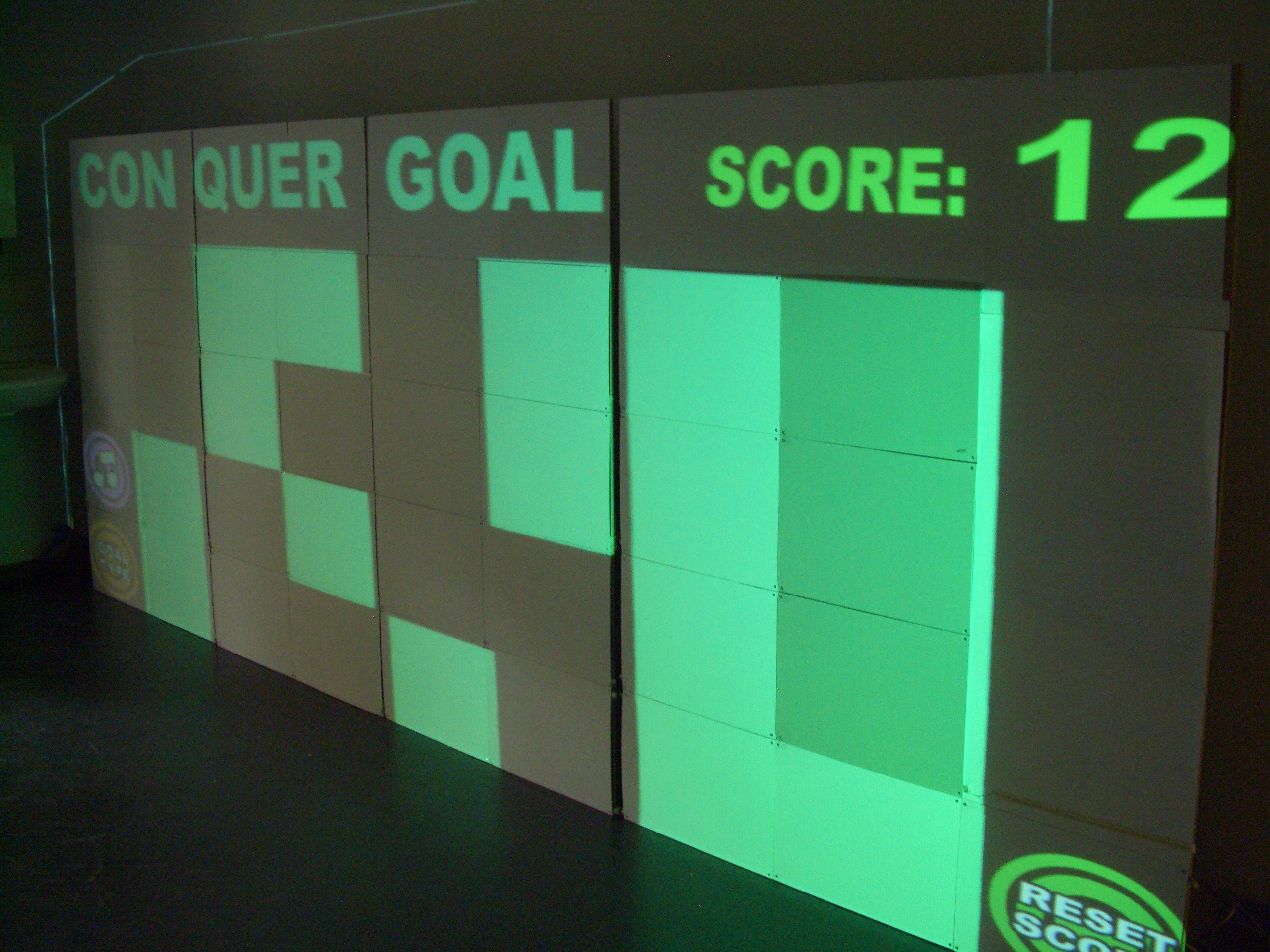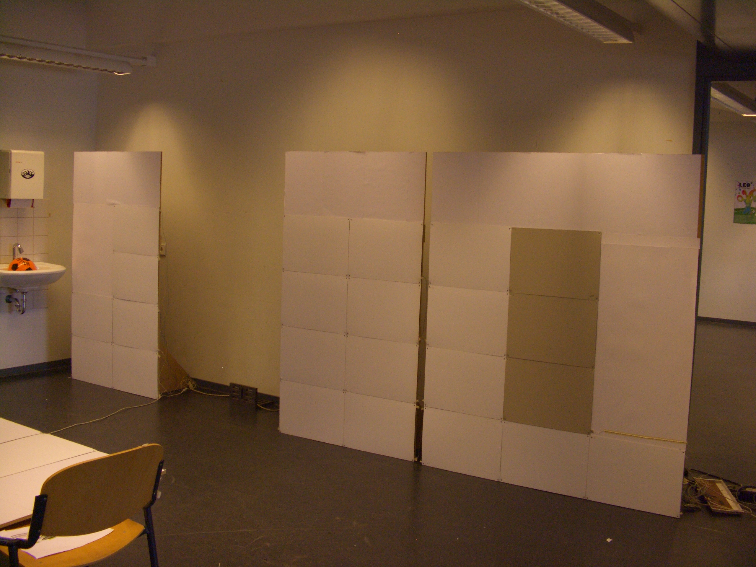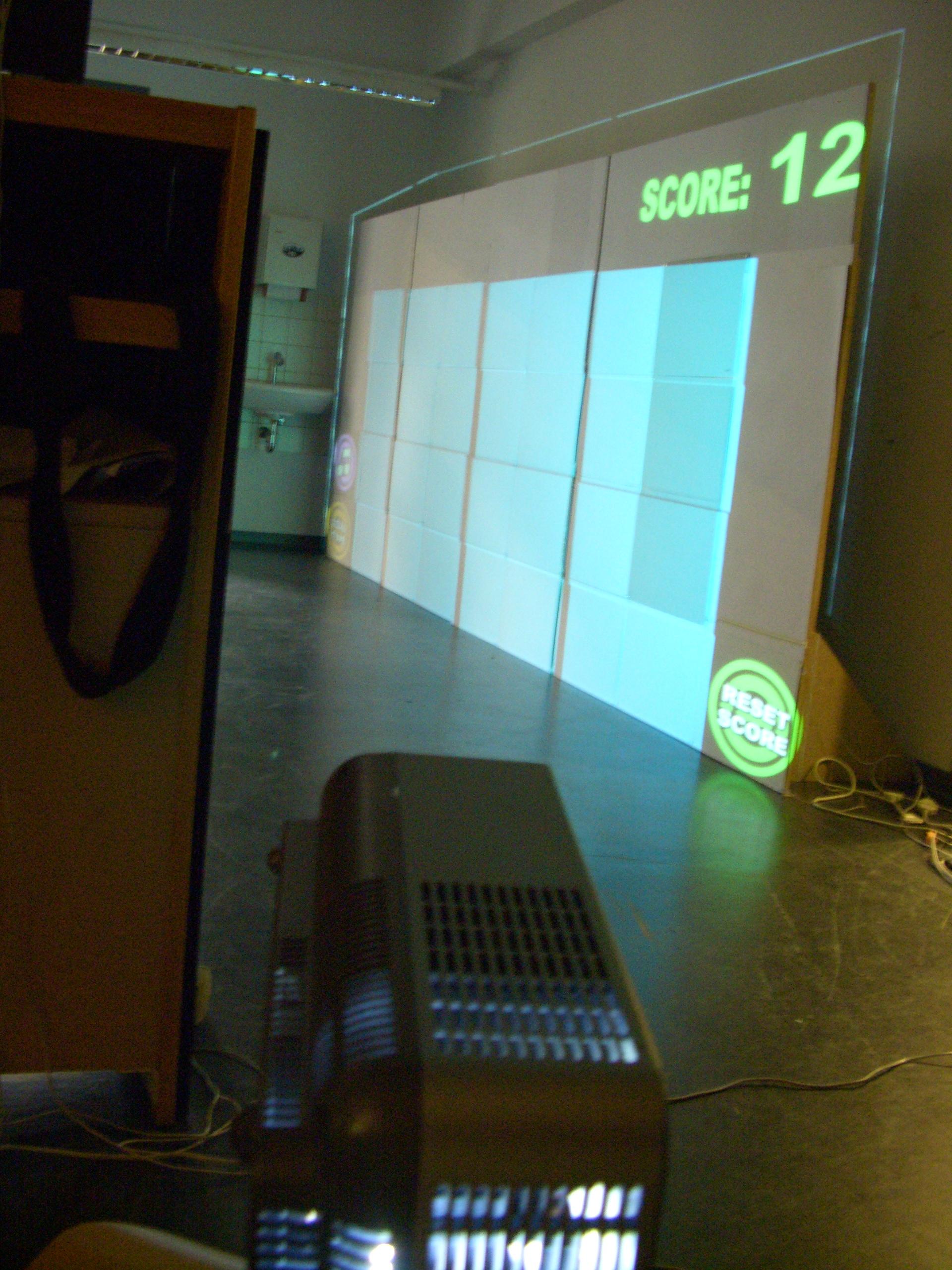 - The light producing panels were replaced by a beamer projecting a flash application that would react to the different key presses sent by the panels and project the right images accordingly.