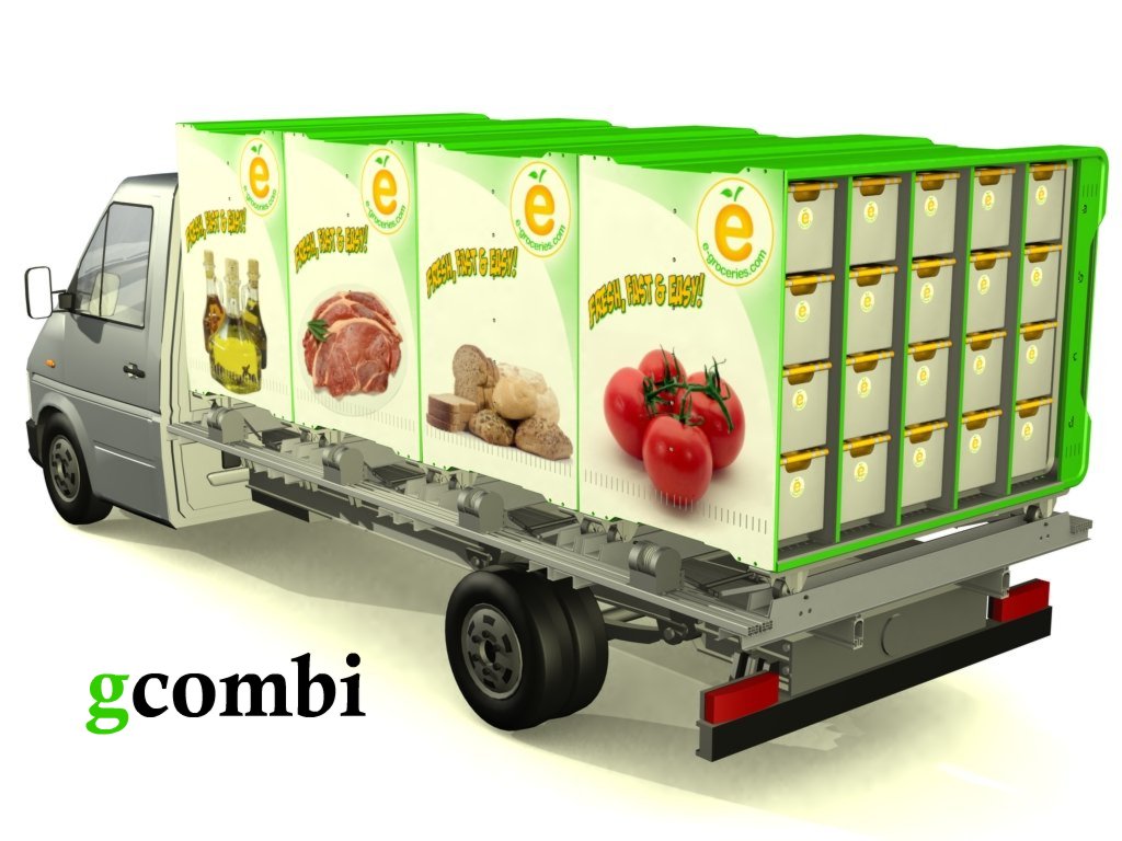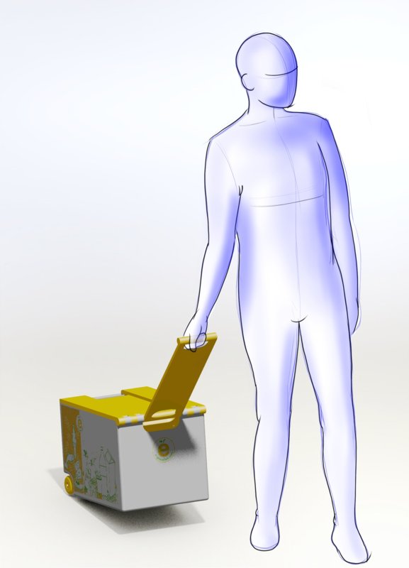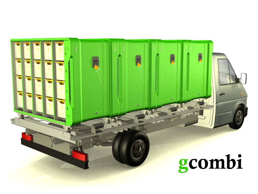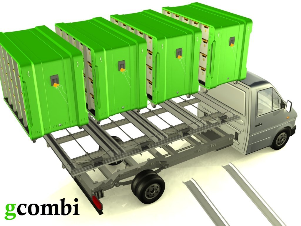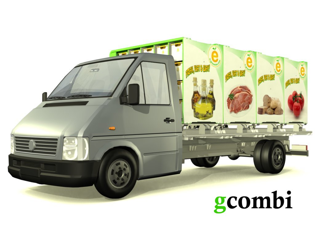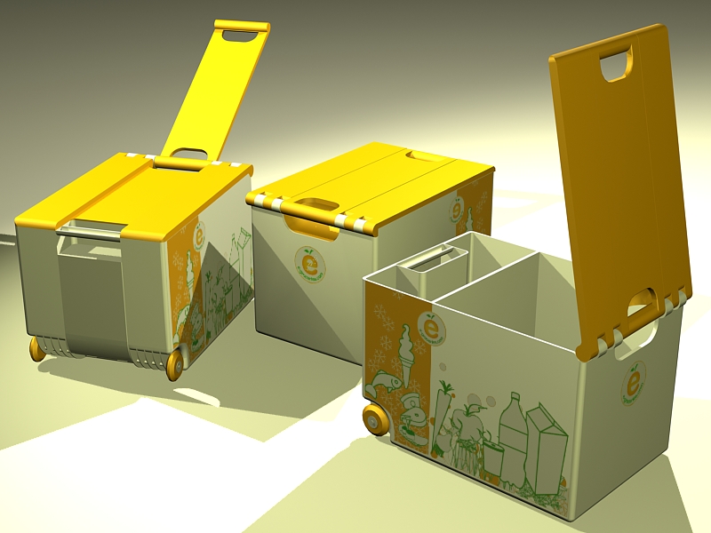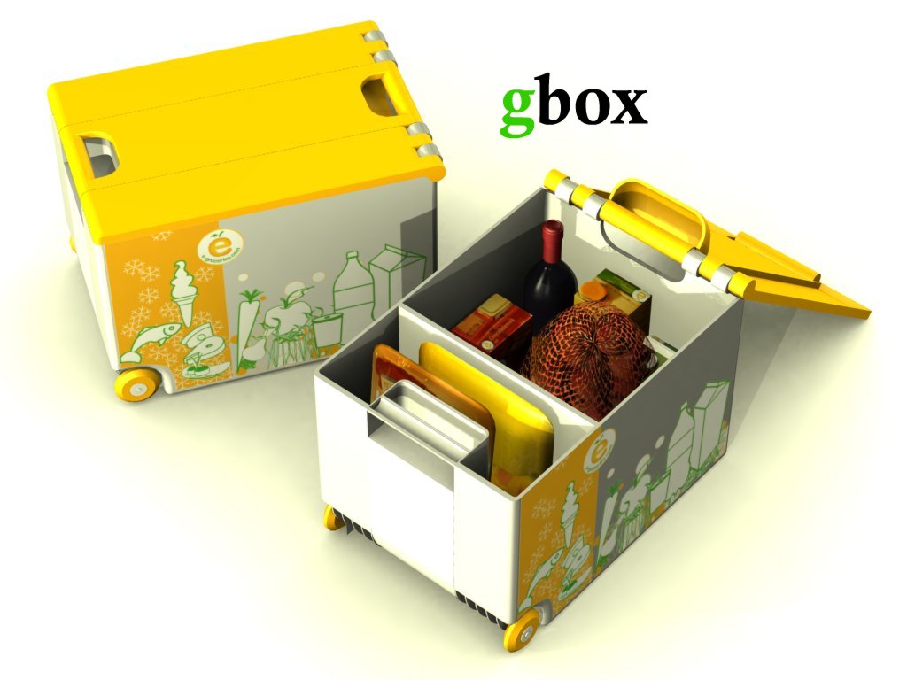 g-box – The g-box is a plastic box to carry groceries (35cm x 35cm x 50cm) to deliver goods in P+R. It was designed specifically for the e-groceries case study and as such it has a compartment for fresh products and one for refrigerated ones.